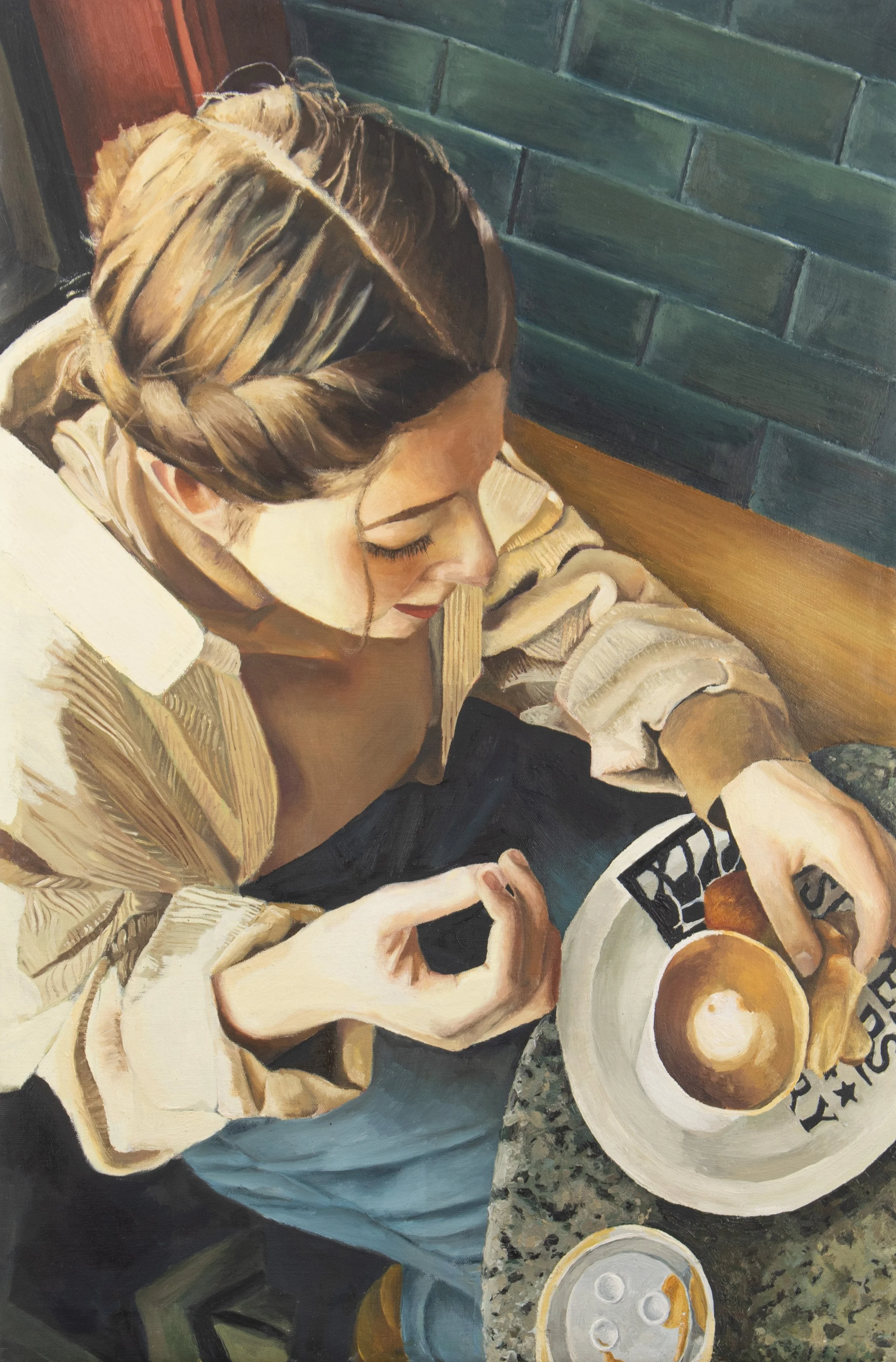 "Morning Croissant", oil on canvas, 20 inches by 30 inches